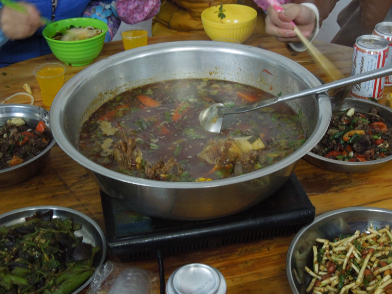 公司老板葉總親自下廚,老板平時很愛下廚,到了這一天,當然也不會閑下來,煮羊肉火鍋的湯和羊排是早在一天前就已經燉煮好了,葉總把火鍋的底料和調料配好,再經過自己的精心安排,濃濃的香味早就撲鼻而來,遠在食堂門口,就可以聞到羊肉的湯的那味道。羊肉湯對胃有保護的效果,經常喝酒的人常喝羊肉湯為胃壁有保護的作用,這個是醫學上都有有說法的。
