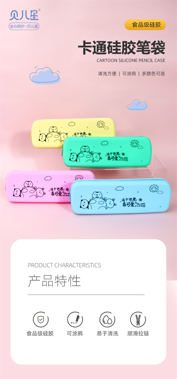 收納硅膠筆袋主要用于文具筆墨橡皮存放,適用于中小學兒童學生收納,學堂用文具盒,可用于存放170MM以下的筆和各種學習工具,也可存放收納其他物品以及小型禮品,表面圖案為卡通形狀適用于6-12周歲兒童使用!