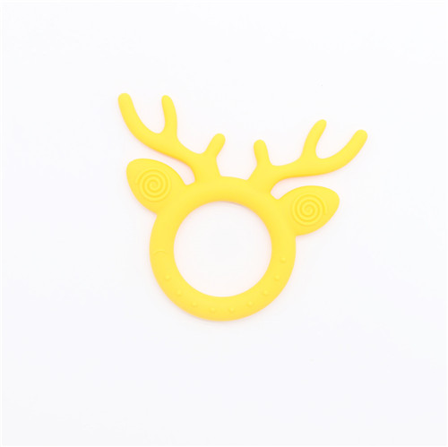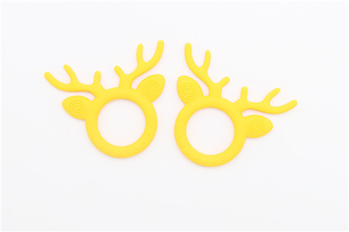 鹿角牙膠主要以卡通圓弧形加鹿角結構結合而后才能,才有40度柔軟原材料生產鹿角部分可直接入口咬合,角部R角弧形偏大不會對口腔造成影響危害,圓形圈握手直徑6M可直接手握玩耍,設計完全符合幼兒使用設計。